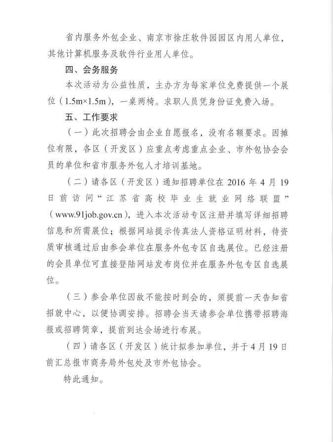 關(guān)于組織開展2016年服務(wù)外包人才專場招聘活動的通知