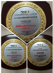 在大會(huì)的晚宴上,舉行了由鼎韜產(chǎn)業(yè)研究院主辦的TOPs系列評(píng)選的頒獎(jiǎng)儀式,潘金貴副總經(jīng)理為FNST捧回了三塊獎(jiǎng)牌: